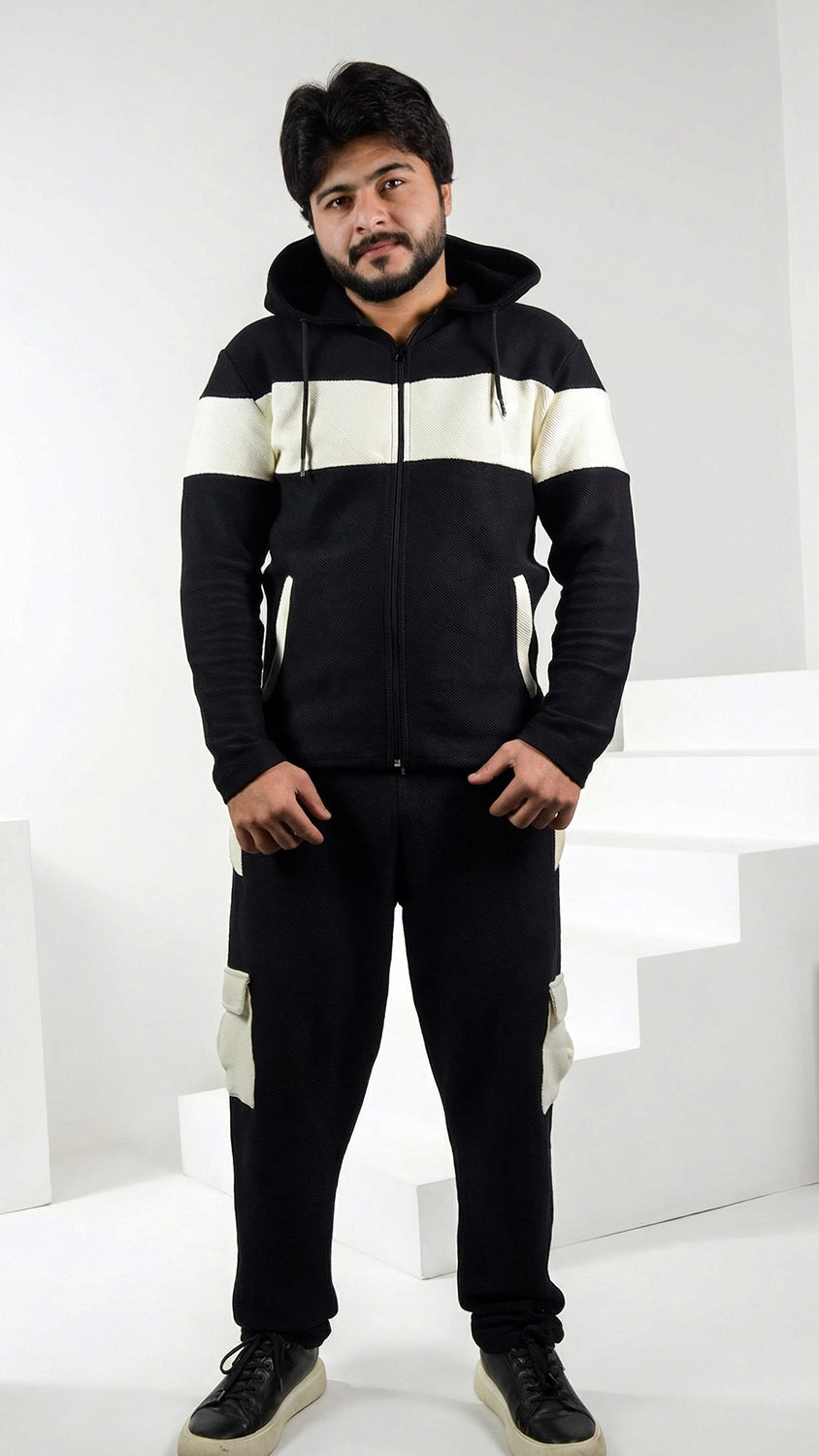 Elite Black Jacquard Zipper Tracksuit
