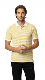 Brighten up your summer wardrobe with The Solaris Stripe Polo, a perfect fusion of cool comfort and refined style. Made from 100% pure cotton, this lightweight polo features a vibrant yarn-dyed pattern of white and yellow stripes, designed to keep you looking fresh and feeling cool even on the hottest days.