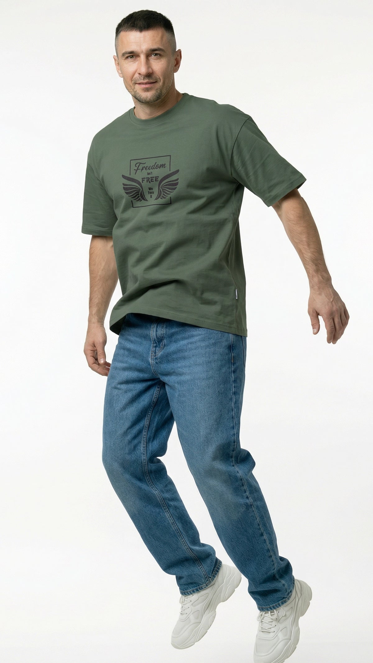Elevate your summer wardrobe with the Freedom Emerald Dropshoulder T-Shirt – crafted from premium cotton jersey fabric in a rich dark green (emerald) shade. Featuring the bold printed message “Freedom isn’t free – we earn it”, this T-shirt blends powerful expression with effortless style. The relaxed dropshoulder fit ensures a modern silhouette, while the breathable, soft texture keeps you comfortable even in warm weather. Designed for the confident man who values comfort, quality, and statement fashion.